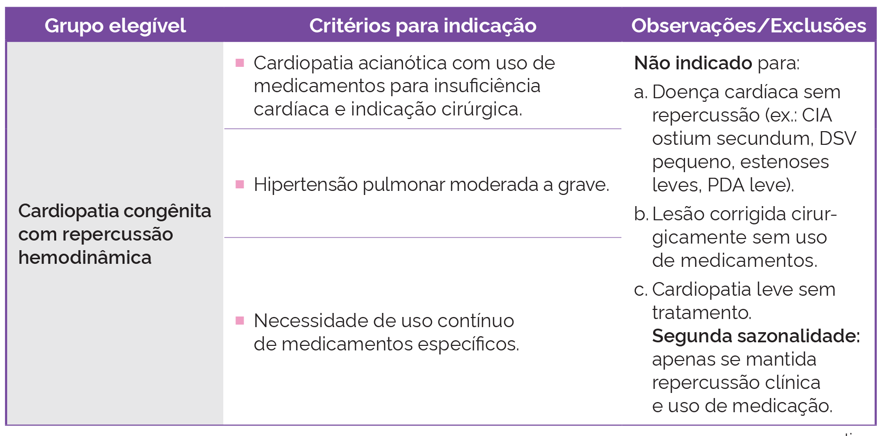 ii. Doença cardíaca congênita com repercussão hemodinâmica demonstrada;